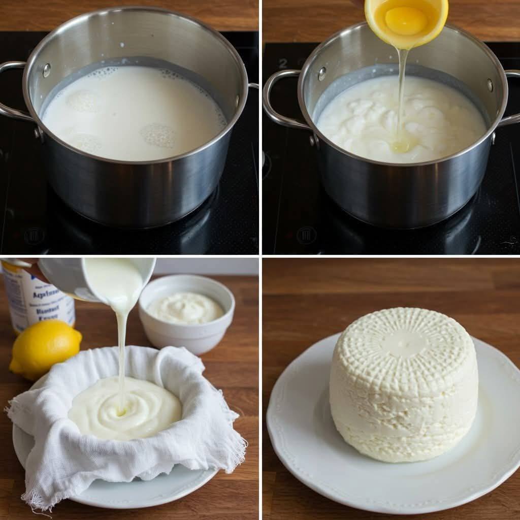 Formaggio fatto in casa con 1 litro di latte, mezzo limone e 1 yogurt.