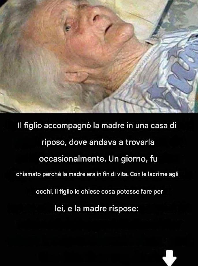 Un giorno, ricevette una telefonata dalla casa di riposo: «Mamma, è molto grave... per favore, vieni a trovarci».