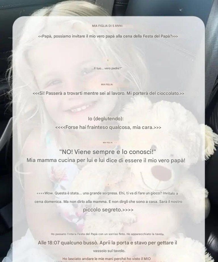 "Viene spesso e mi porta cose carine, come cioccolatini, e facciamo dei tè. La mamma a volte cucina per lui, e tu lo conosci. Mi ha detto che è il mio vero padre".