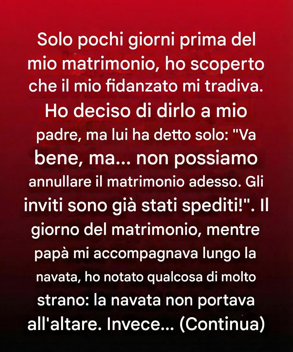 L’uomo che avrei dovuto sposare mi aveva tradita.
